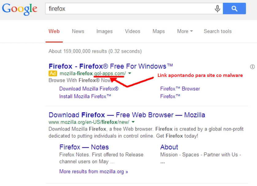Esse problema está se tornando cada vez mais comum, pois muitos cibercriminosos estão usando anúncios maliciosos para induzir os usuários a baixar malware ou fornecer informações pessoais. É importante ficar atento aos links retornados pelo buscado, se estão apontando realmente para os sites verdadeiros de cada software.