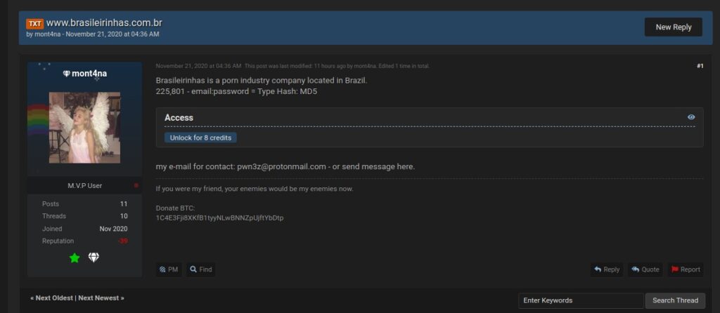 Antes de tudo é importante deixar claro que esse vazamento não é recente, ele foi publicado em um extinto fórum de venda de dados na internet em novembro de 2020:
