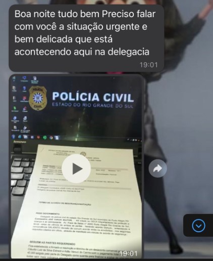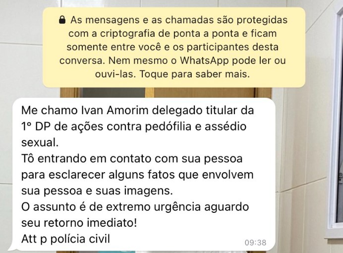 Golpistas se passaram por agentes da Polícia Civil para tentar extorquir um jovem em um novo golpe. O caso foi compartilhado pelo arquiteto Matheus Garcia em sua página no Twitter, e mostra como bandidos usam uma falsa acusação de pedofilia para chantagear vítimas.