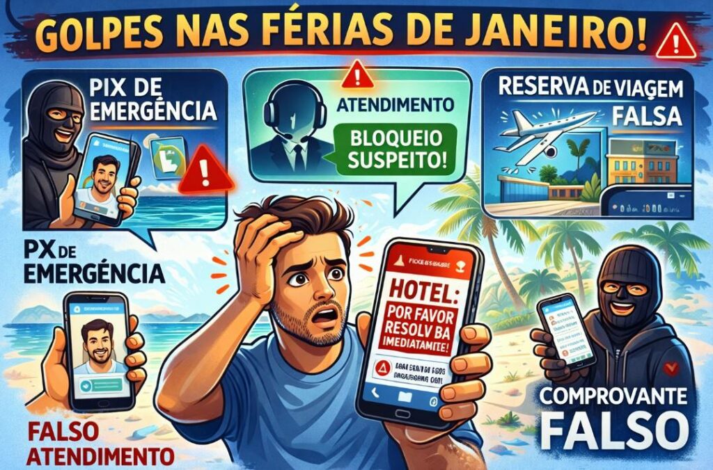 As férias de janeiro, tradicionalmente associadas a descanso, viagens e lazer, também marcam um período de forte aumento nos golpes